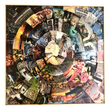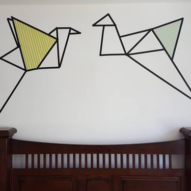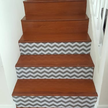 In the top left corner, you'll see a 4x4 collage I crafted by cutting and arranging strips from magazines. This piece greets me every day at the top of my stairs, and I adore everything about it. There are also some examples of projects I made with the kids, as well as DIY projects to make our rental nicer without damaging anything - a painting made completely with artist tape, and stairs upgraded with a peel and stick step risers!